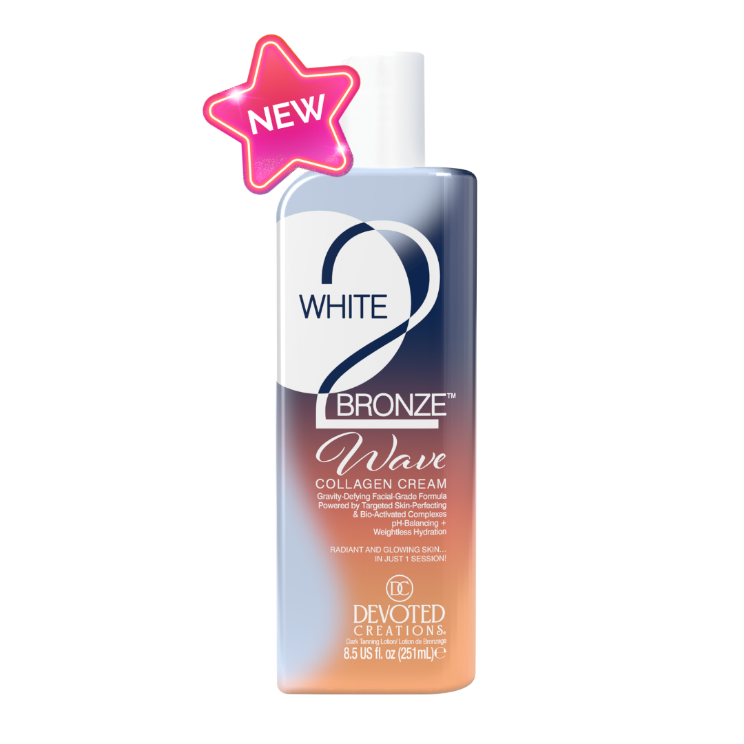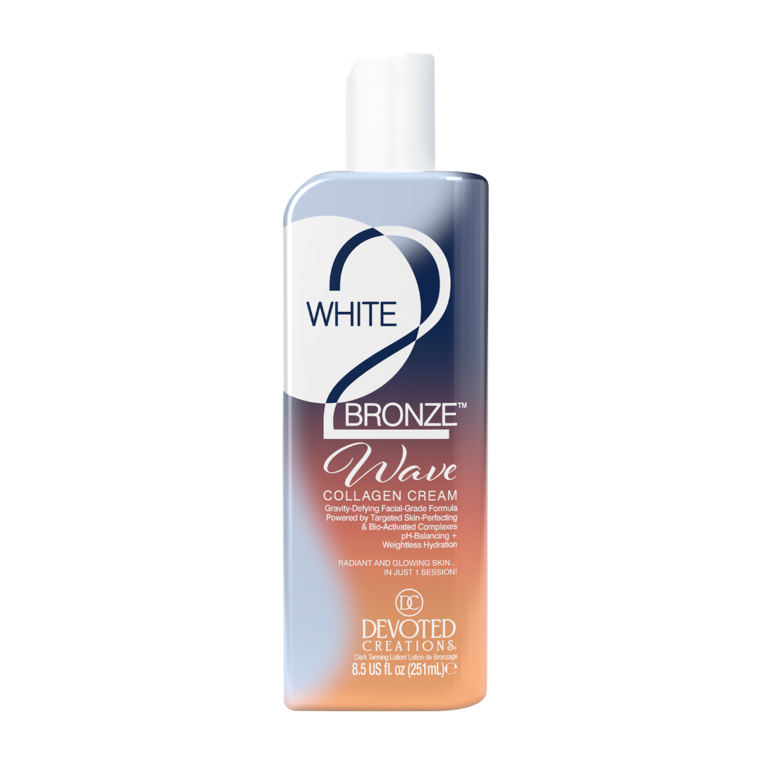 White 2 Bronze Wave is a next-gen, skin-enhancing accelerator designed to boost your glow while leaving skin hydrated, smooth and radiant. It transforms every tanning session into a radiant, skin-replenishing ritual.